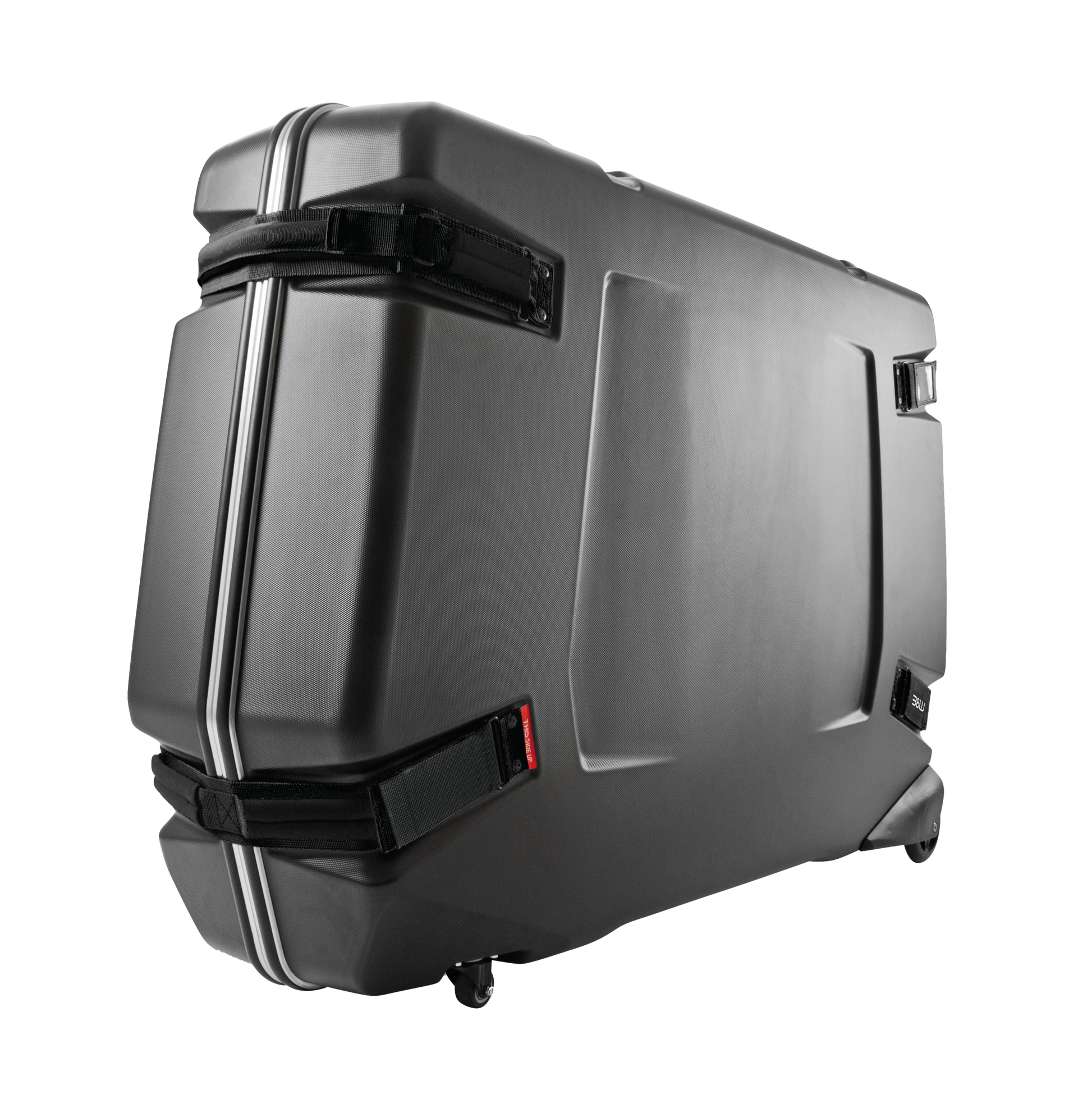 Our large B&W bike.case II is the successor to the bike.case and offers enough space for racing bikes, triathlon bikes, and mountain bikes with a wheel size up to 29”. Whether on a plane, at competitions, or on tour, the practical B&W bike.case II can go anywhere, providing optimal, dependable protection for your bike at all times—essential for professional riders in particular. The rugged ABS shell has an aluminum rim with reinforced corners that efficiently absorbs falls and impacts. The B&W bike.case II comes with extensive interior accessories to safely cushion every part of your bike and is easy to maneuver with its four smooth-running casters.