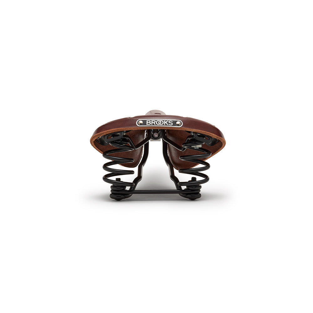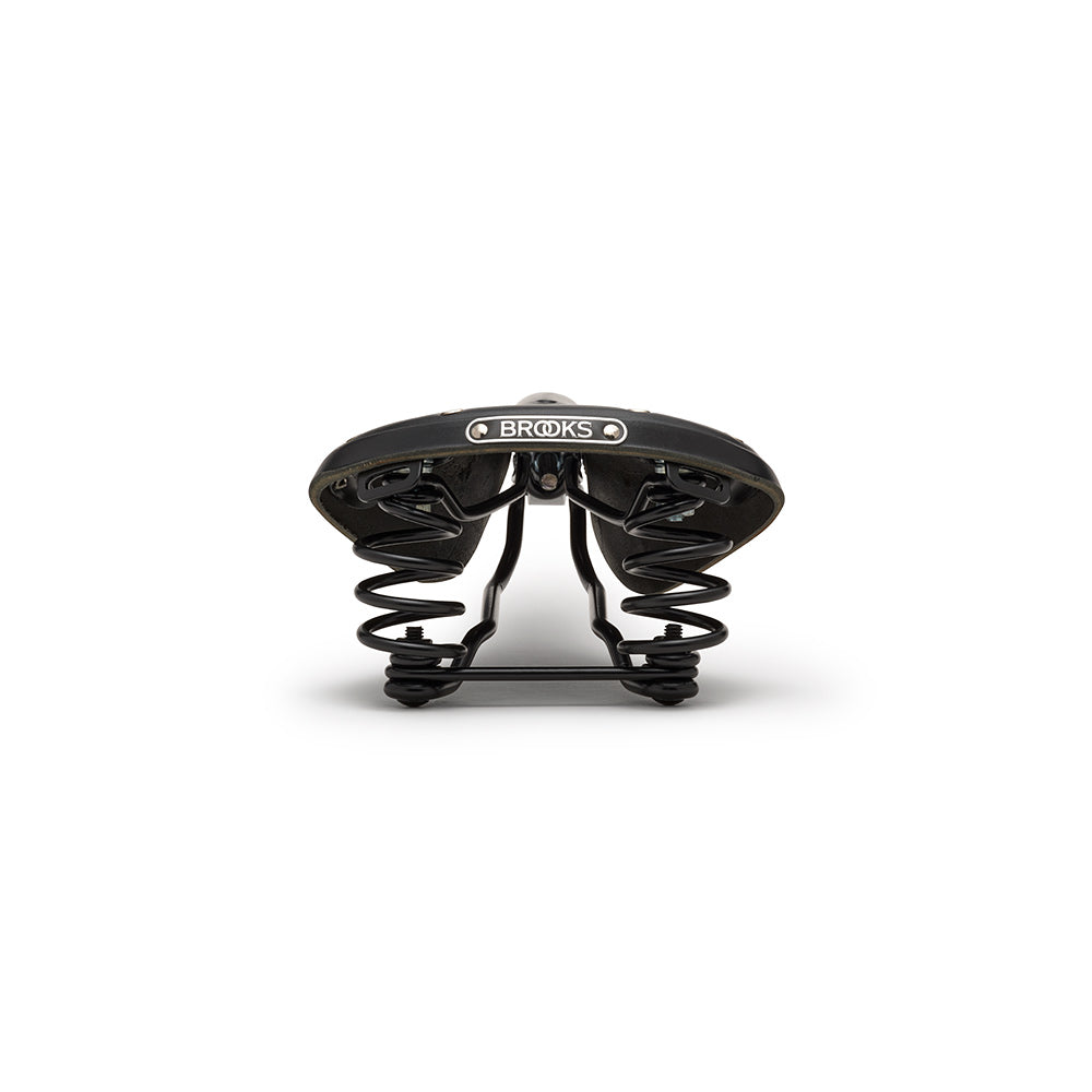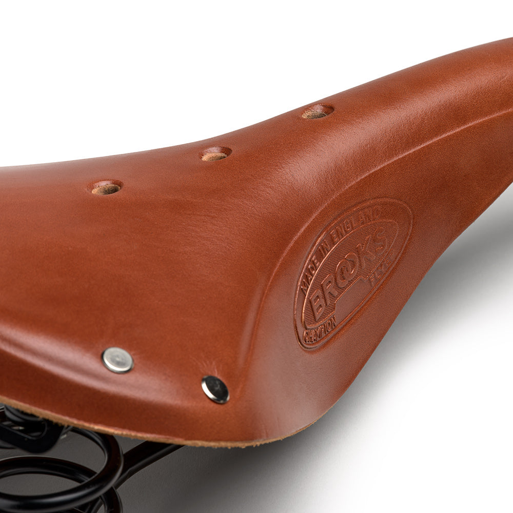 The Brooks England Flyer is a classic leather touring saddle equipped with rear coil springs for added comfort on long-distance rides. Combining the proven shape of the B17 with extra suspension, it’s ideal for rough roads, gravel adventures, and extended touring. Built from premium vegetable-tanned leather and durable steel rails, the Flyer delivers a supple ride that only improves with age.